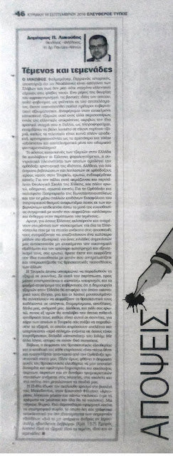 "Τέμενος και τεμενάδες". Νέο άρθρο του Δημητρίου Π. Λυκούδη στην έντυπη εφημερίδα ΕΛΕΥΘΕΡΟΣ ΤΥΠΟΣ (18/09).