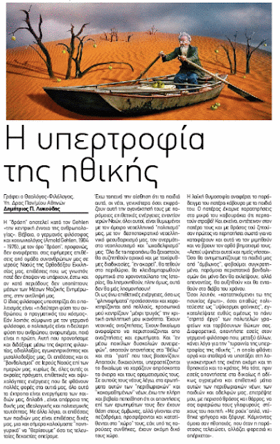 "Η υπερτροφία της ηθικής". Νέο άρθρο του Δημητρίου Π. Λυκούδη στην έντυπη εφημερίδα "Η Ροδιακή" [21/08/2016]