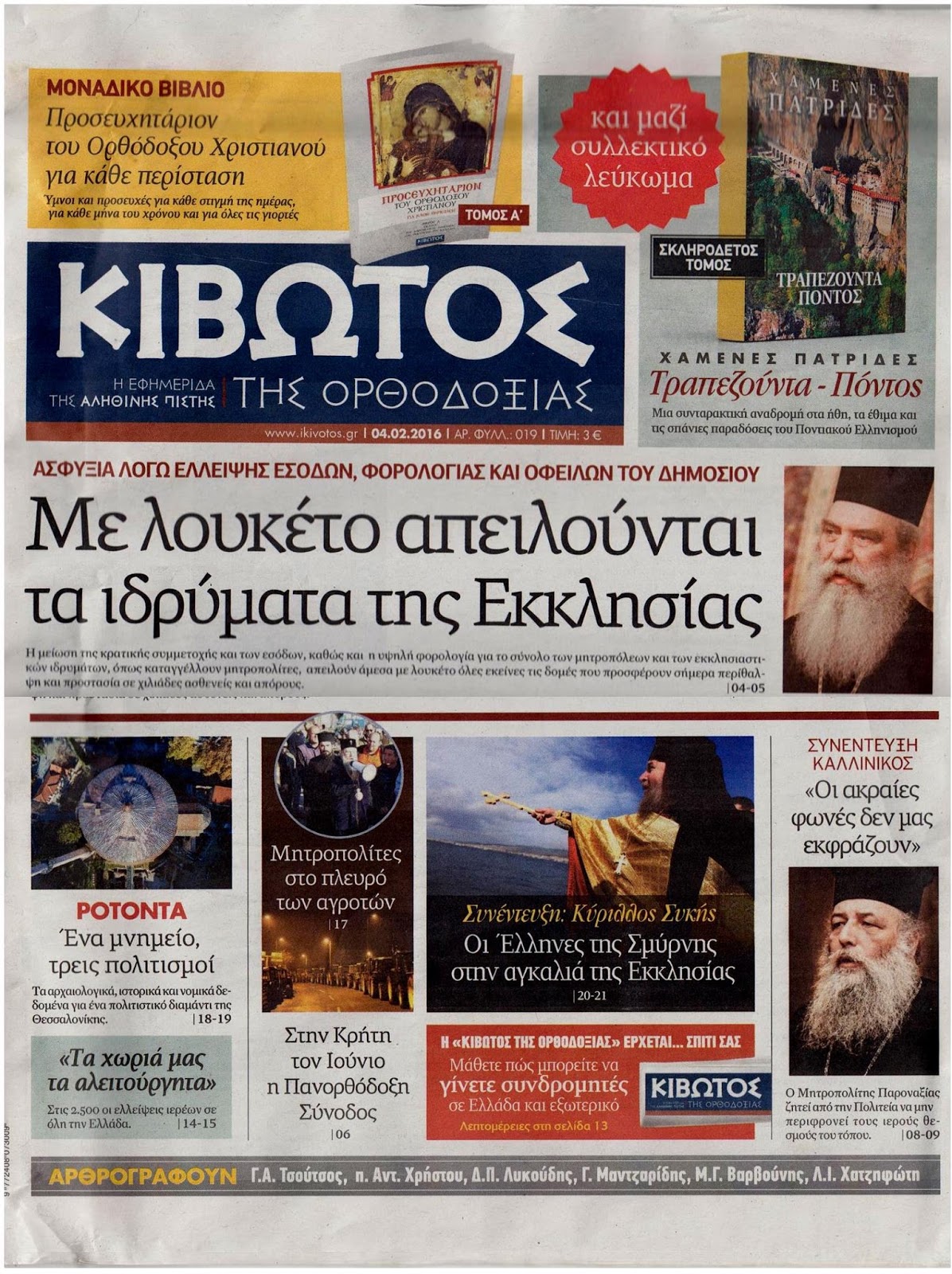 στην εφημερίδα "ΚΙΒΩΤΟΣ ΤΗΣ ΟΡΘΟΔΟΞΙΑΣ"