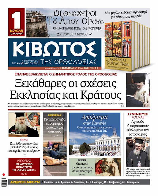 στην εφημερίδα "ΚΙΒΩΤΟΣ ΤΗΣ ΟΡΘΟΔΟΞΙΑΣ"