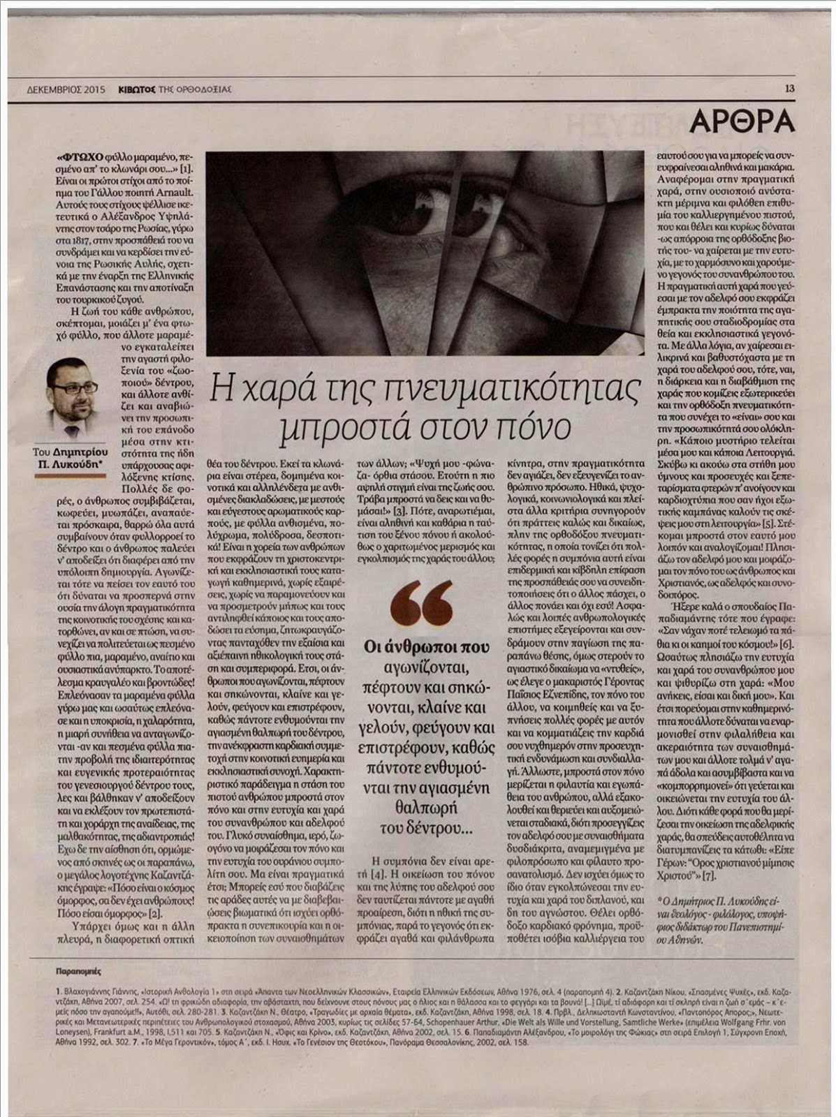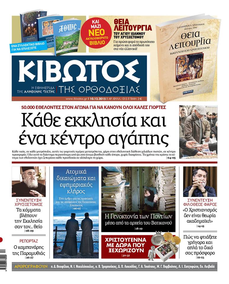 Νέο άρθρο του Δημητρίου Π. Λυκούδη στην έντυπη εφημερίδα "Κιβωτός της Ορθοδοξίας" [10/12/2015]