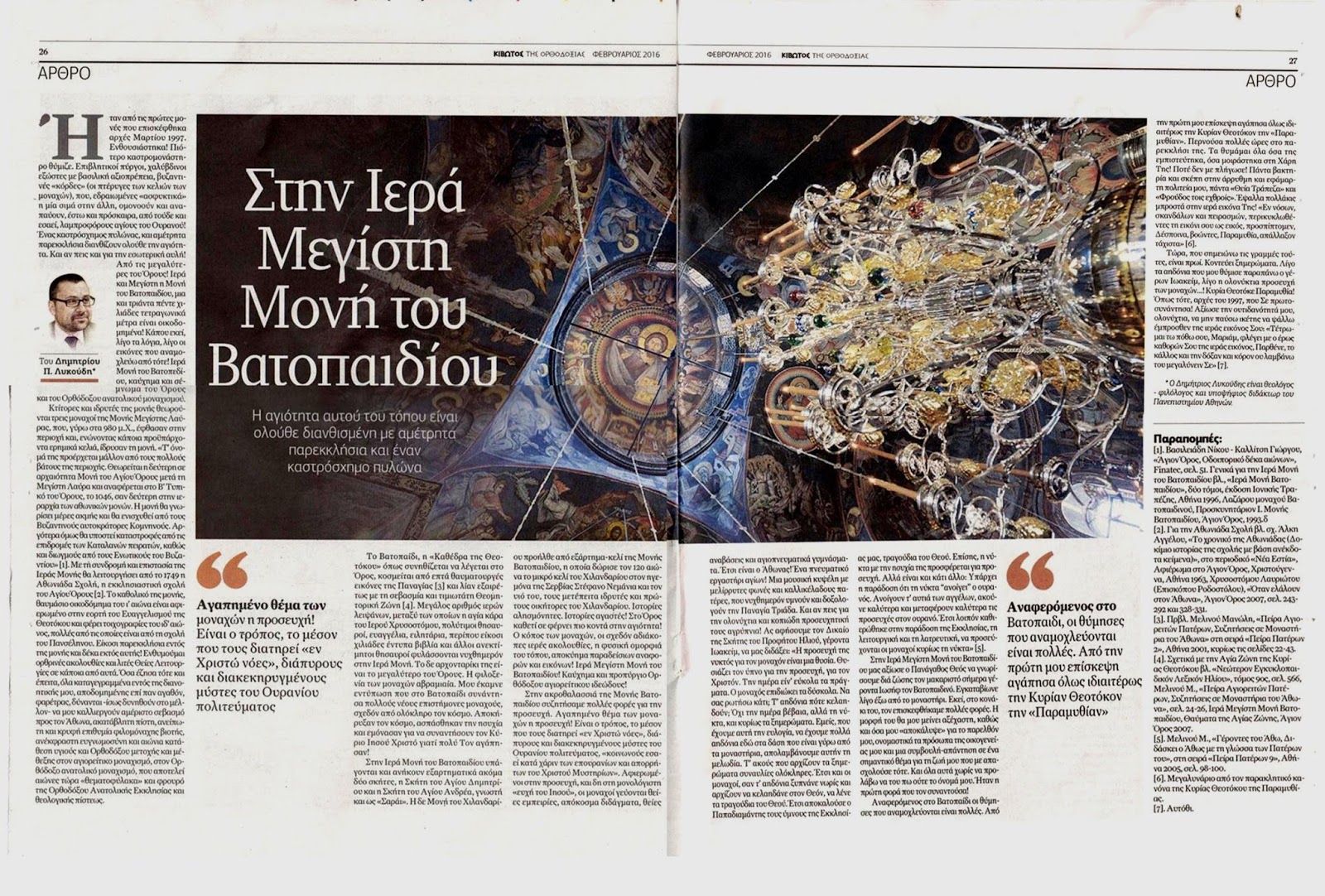 στην εφημερίδα "ΚΙΒΩΤΟΣ ΤΗΣ ΟΡΘΟΔΟΞΙΑΣ"
