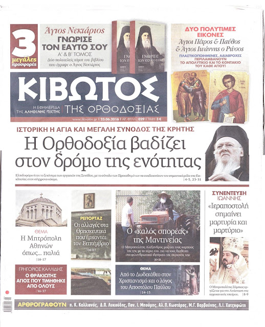 Νέο άρθρο του Δημητρίου Π. Λυκούδη στην έντυπη εφημερίδα "Κιβωτός της Ορθοδοξίας" [23/06/2016]