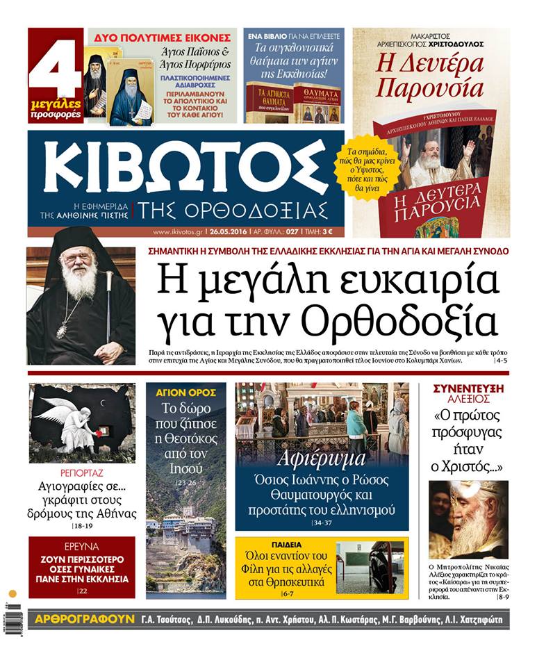 στην εφημερίδα "ΚΙΒΩΤΟΣ ΤΗΣ ΟΡΘΟΔΟΞΙΑΣ"