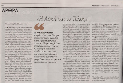 Νέο άρθρο του Δημητρίου Π. Λυκούδη στην έντυπη εφημερίδα "Κιβωτός της Ορθοδοξίας" με θέμα: "Η Αρχή και το Τέλος"