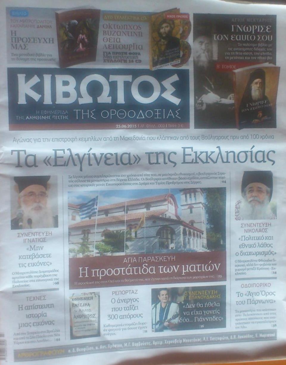 στην εφημερίδα "ΚΙΒΩΤΟΣ ΤΗΣ ΟΡΘΟΔΟΞΙΑΣ"