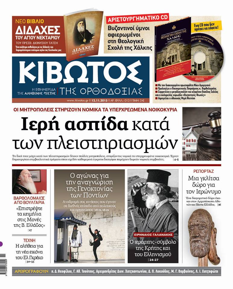 στην εφημερίδα "ΚΙΒΩΤΟΣ ΤΗΣ ΟΡΘΟΔΟΞΙΑΣ"