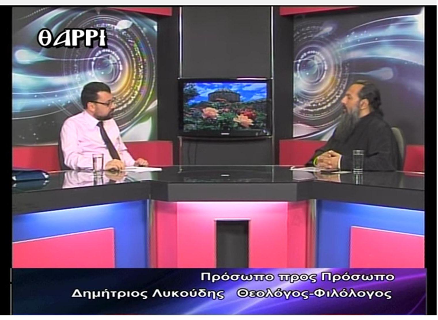 Ο Δημήτριος Π. Λυκούδης καλεσμένος στην τηλεοπτική εκπομπή "Πρόσωπο προς Πρόσωπο" της τηλεόρασης "ΘΑΡΡΙ", συνομιλεί με τον π. Νεκτάριο Φ. Πόκια.