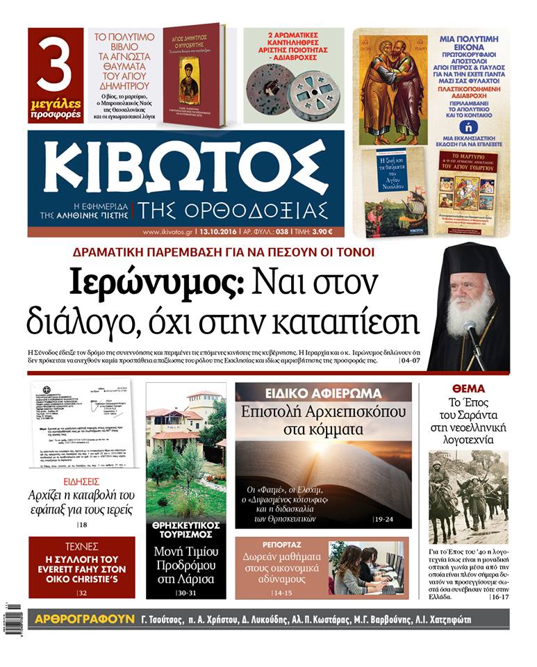 στην εφημερίδα "ΚΙΒΩΤΟΣ ΤΗΣ ΟΡΘΟΔΟΞΙΑΣ"